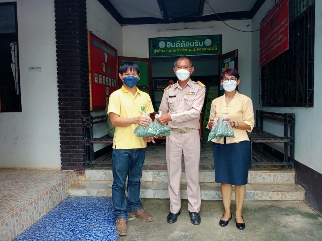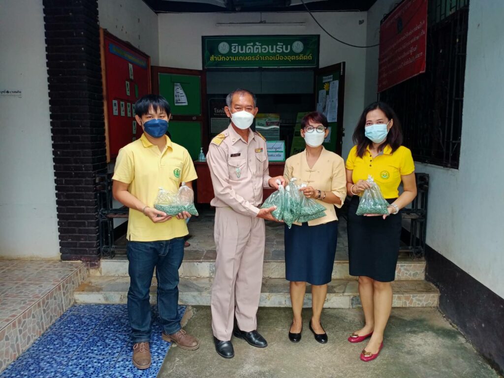 วันจันทร์ที่ 5 กันยายน 2565 เวลา 13.00 น. นางปัทมา เพ็ชรสุวรรณ์ เกษตรอำเภอเมืองอุตรดิตถ์พร้อมด้วยเจ้าหน้าที่เกษตรอำเภอเมืองอุตรดิตถ์ มอบเชื้อราไตรโคเดอมาร์ให้กับสำนักงานส่งเสริมการศึกษานอกระบบและการศึกษาตามอัธยาศัย (กศน.) อำเภอเมืองอุตรดิตถ์ เพื่อนำไปใช้ในหน่วยงานเพื่อขยายผลในการใช้สารชีวภัณฑ์ในการป้องกันกำจัดศัตรูพืชต่อไป ณ สำนักงานเกษตรอำเภอเมืองอุตรดิตถ์ ตำบลท่าอิฐ อำเภอเมืองอุตรดิตถ์ จังหวัดอุตรดิตถ์