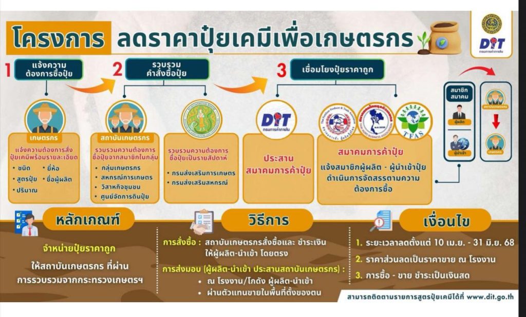 เกษตรกรผู้สนใจสามารถติดตามรายการสูตรปุ๋ยเคมีได้ที่ www.dit.go.th