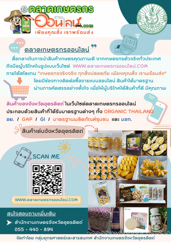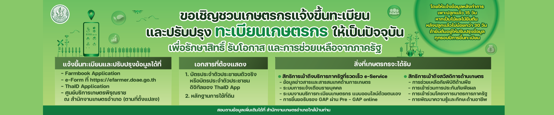 2654 ข่าวสารและประชาสัมพันธ์ ข่าวประชาสัมพันธ์ข่าวประกาศ เกษตรอุตรดิตถ์ : ประชุมสำนักงานเกษตรจังหวัดประจำเดือน (PM) ครั้งที่ 1/2569ข่าวประชาสัมพันธ์วัน… อ่านต่อเกษตรอุตรดิตถ์ ส่งเสริมเทคโนโลยีการปลูกข้าวโพดเลี้ยงสัตว์ฤดูแล้งข่าวประชาสัมพันธ์วัน… อ่านต่อเกษตรอุตรดิตถ์ : ประชุมเกษตรอำเภอประจำเดือน (MM) สัญจร ครั้งที่ 12/2568ข่าวประชาสัมพันธ์วัน… อ่านต่อ อ่านทั้งหมด อ่านทั้งหมด สื่อเรียนรู้เพื่อการเกษตร อ่านทั้งหมด ข้อมูลบริการด้านการเกษตร อ่านทั้งหมด เกร็ดความรู้ด้านการเกษตร อ่านทั้งหมด