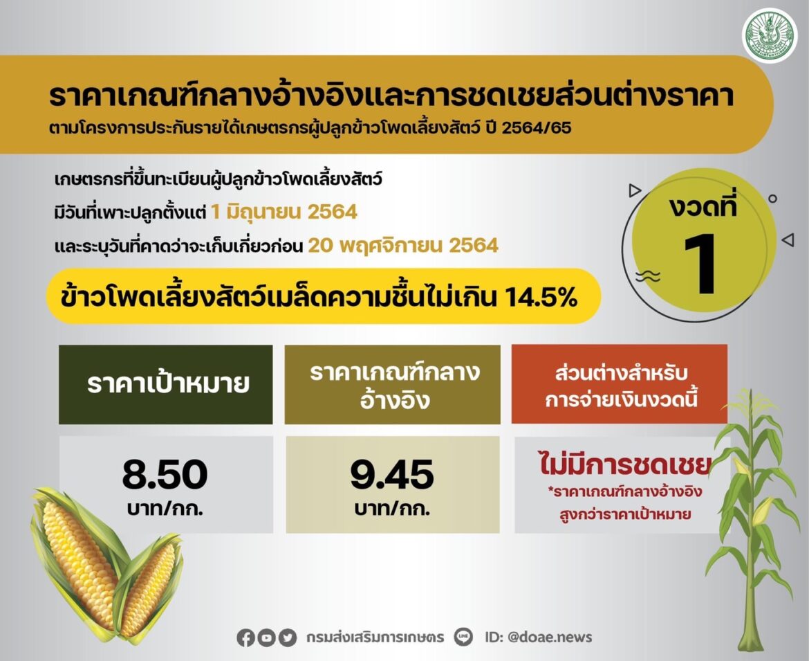 ราคาเกณฑ์กลางอ้างอิงและการชดเชยส่วนต่างราคาข้าวโพดเลี้ยงสัตว์ งวดที่1